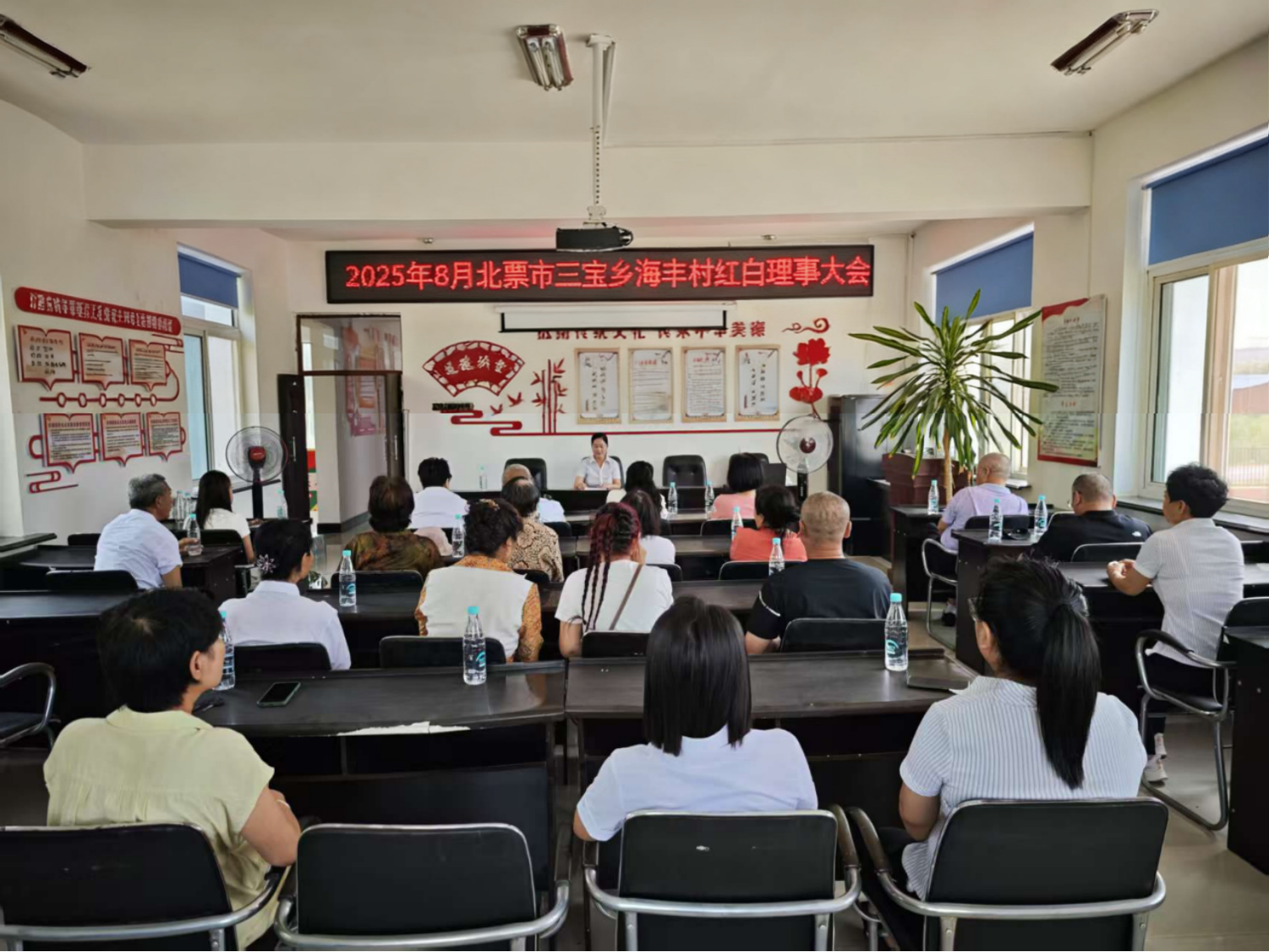2025年8月21日,海丰村“两委”组织召开了“红白理事大会”,活动旨在引导村民树立正确的价值观和消费观,让村民意识到人情攀比的危害,形成厚养薄葬的共识,从大操大办到喜事新办、白事简办,引导村民在日常生活中崇尚科学,反对封建迷信和铺张浪费,进一步增强了村民“讲文明、树新风”的思想观念。