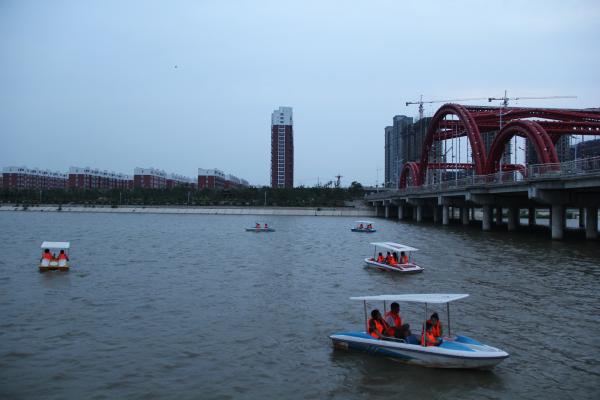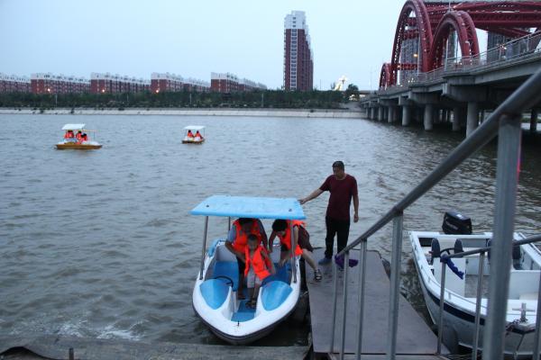 据记者观察,人工湖畔的租赁脚蹬船和电动船深受市民喜欢,每艘小船上都坐满了身着救生衣的游人。“我们每天营业到10点半左右,这期间我们的9艘小船供不应求,大家都喜欢坐一坐。”美女老板小修笑着对记者说。“最近来人工湖溜达的人也多了起来,这里环境越来越好,景色也越来越美,来的人越多,我们越高兴啊!”