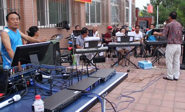 盛夏时分的每晚晚饭过后,老宗和老伴早早的就带上音响、电子琴、架子鼓……来到台吉人工湖的彩虹桥下,支起各项设备,调试罢灯光、音响过后,每晚的属于老百姓自己的演唱会就开唱了。
