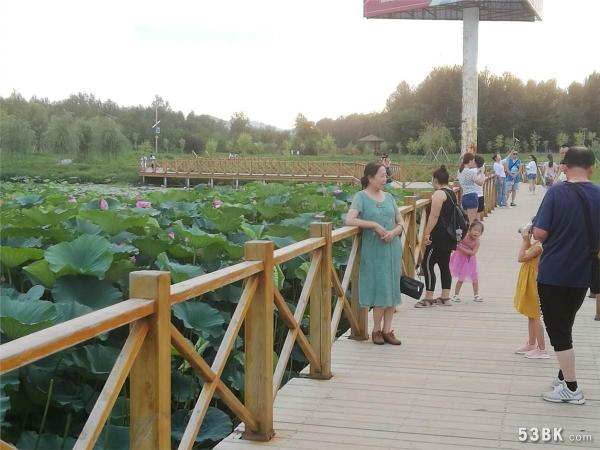 盛夏的河口湿地正值荷花盛开,荷花池中,莲叶摇曳,荷花娇艳,引得众多市民前来散步观赏。湿地建有亭台桥榭等人工建筑;大小荷花池错落有致,荷香怡人;水边芦苇丛生,良好的生态环境,吸引了众多鸟类在此繁衍栖息;吸引摄影爱好者纷至沓来。不时还有游人支起帐篷就地小憩,休闲娱乐品味生活。河口湿地成为了人们放松心情、赏花观景、消夏避暑的好去处。