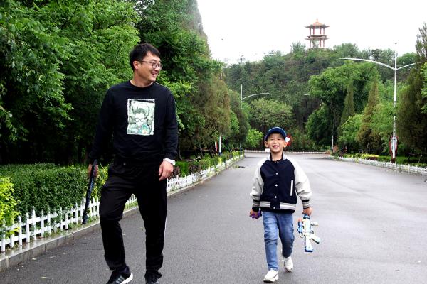 5月31日下午,一对父子在“花果山”游玩,淅淅沥沥的小雨也阻挡不住他们惬意的脚步。