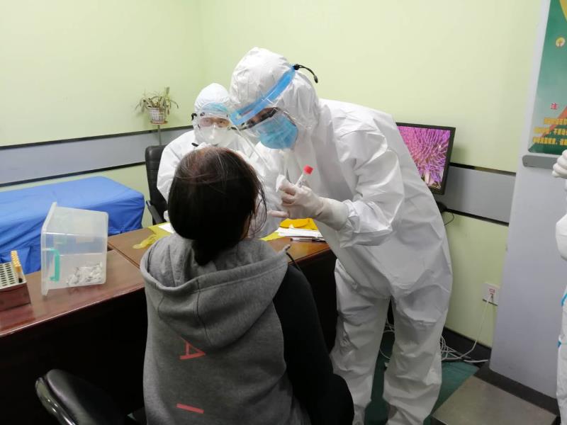 市卫健局工作人员正在采集咽拭子。