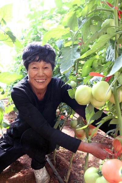 在台吉镇西台吉村,大棚种植的探路者律相久(右)率先改良新品种、引进新技术,带领棚户走高产高效之路,唱响了科技兴农之歌。