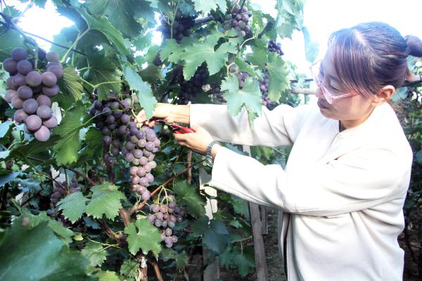 日前,在大三家镇兴隆沟村葡萄采摘园内,一大串一大串晶莹剔透、成熟饱满的葡萄已经挂满枝头,呈现出一派丰收的景象。