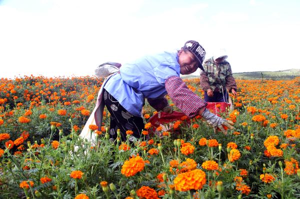 千亩万寿菊,一片丰收色。今年,蒙古营镇积极调整农业种植结构,在大巴沟村栽植了1500余亩万寿菊,最多时每天安排100余人务工,每人每天增收100元以上,不仅美化了乡村,而且拓宽了群众增收致富的“来钱道”。