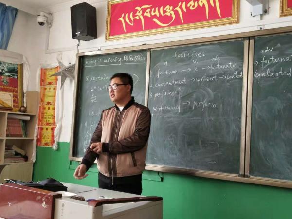 一上讲台我才发现,英语是当地孩子们的第三语言,孩子们英语基础薄弱,现有的教材对他们而言难度比较大,这样的现状让我有点着急。那时,我才感受到在藏区进行英语教学的难度和挑战。