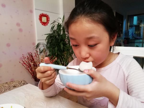 团团圆圆吃元宵。