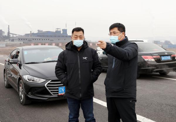李久余(右)在经济开发区冶金园区推进拟建项目征占地工作。