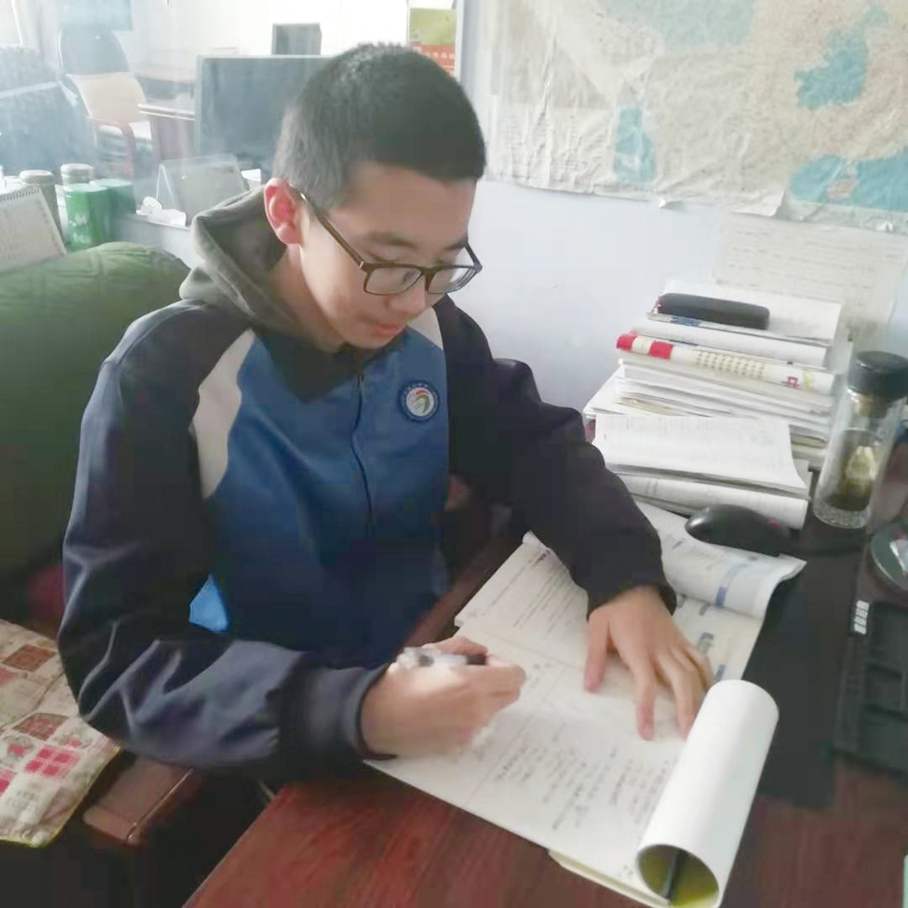 他坚持每天帮父母做一次家务,减轻父母的负担,关注他们的身体健康;在节假日中,他会为父母捶背、洗脚;父母生病时,像父母关心他一样,为他们端水送药,嘘寒问暖;当与父母发生矛盾时,他懂得反思自己,会主动向父母道歉;在学校努力学习,不辜负父母的期望,并经常与父母交谈自己在学校的状况,让父母放心。